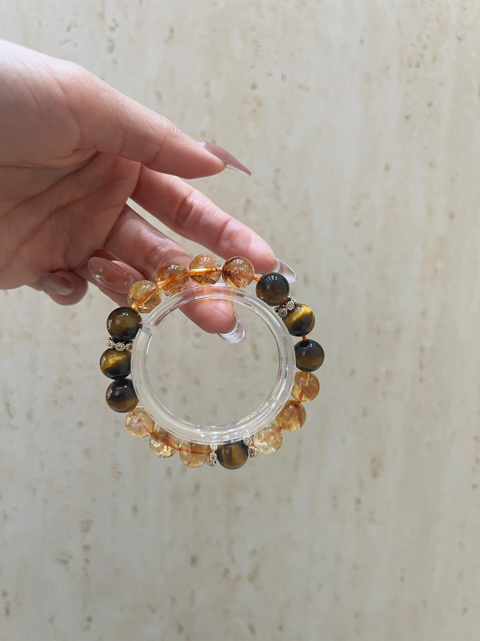 Bracelet with Yellow Danburite and Tiger’s Eye Stone-12mm