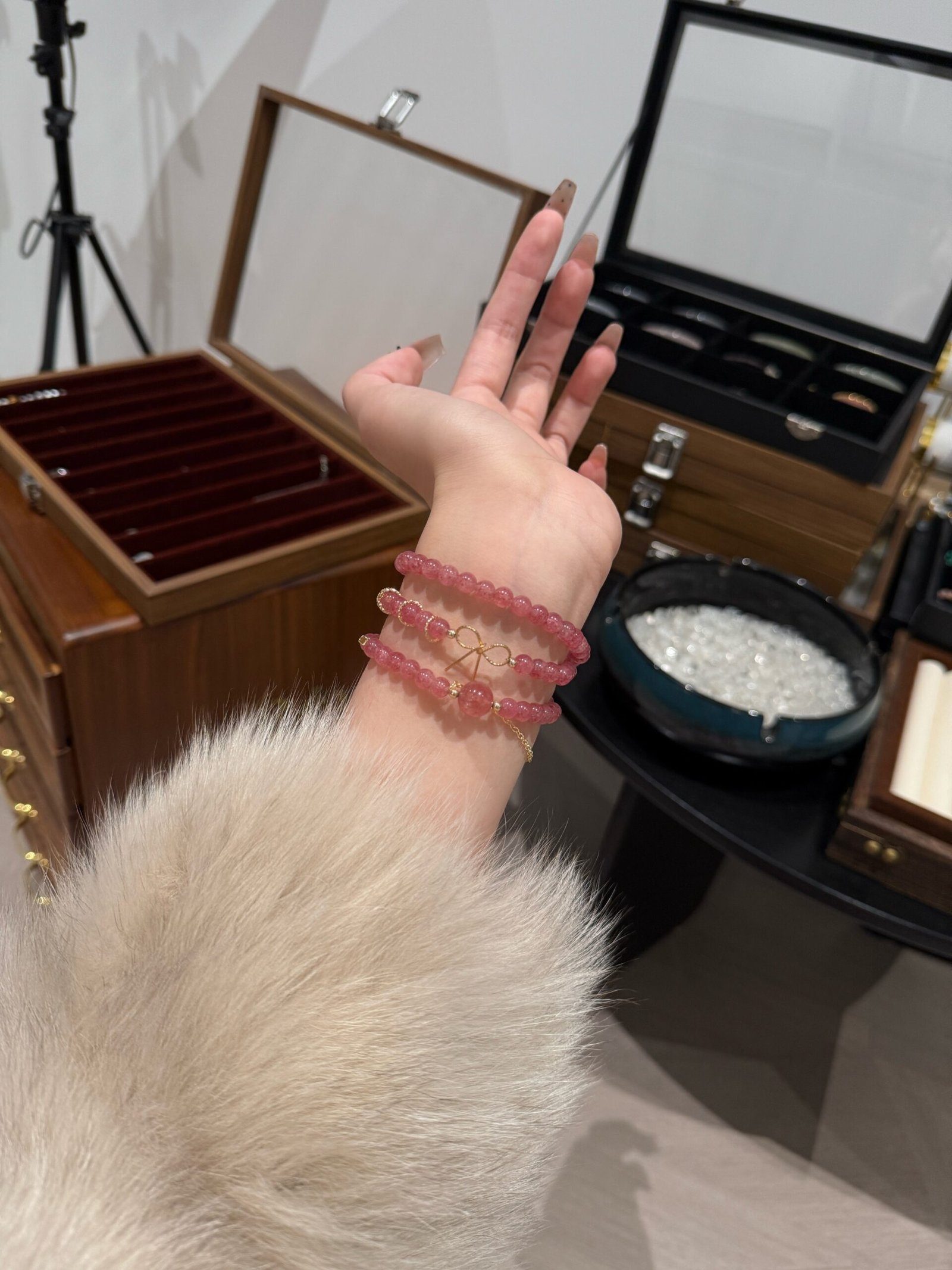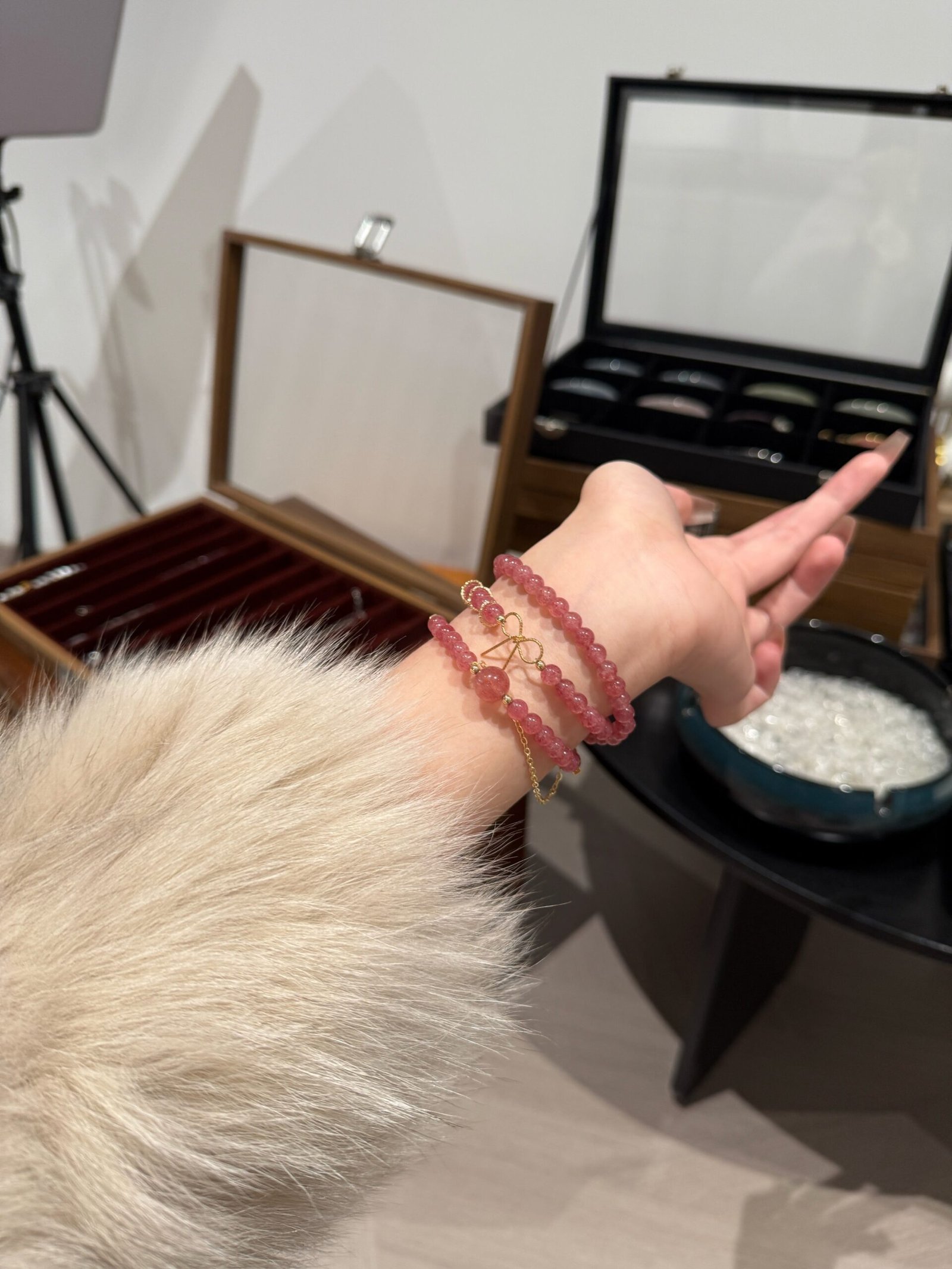 Three-layered Strawberry Quartz Bracelet in Princess Style