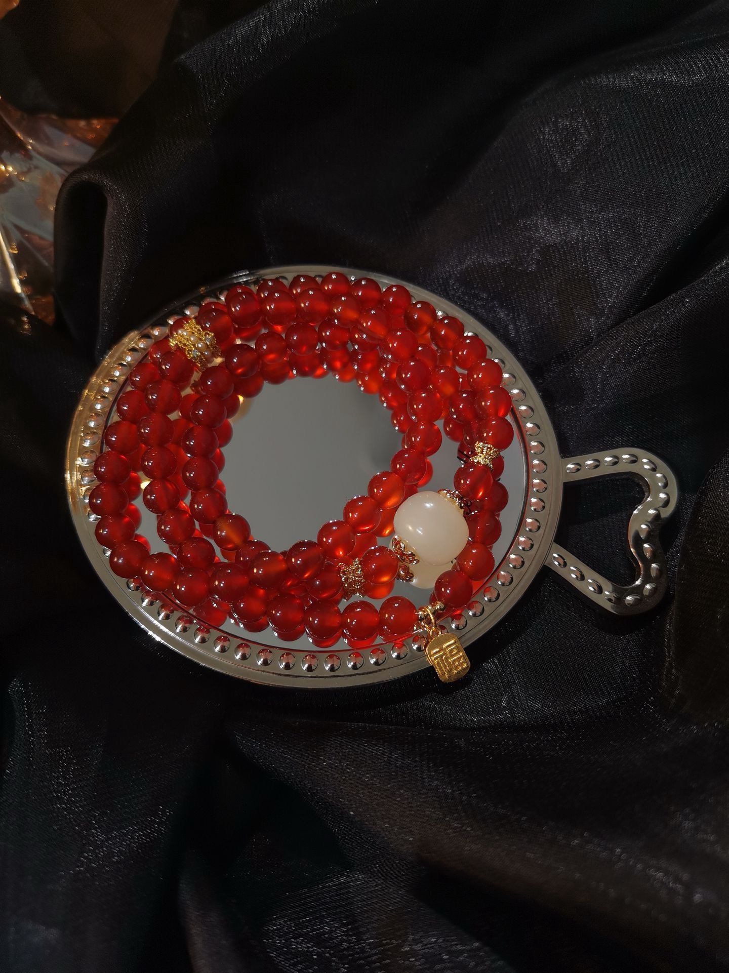 Triple – Layered Bracelet with Red Agate and Nephrite Jade (Lucky Red)-8mm