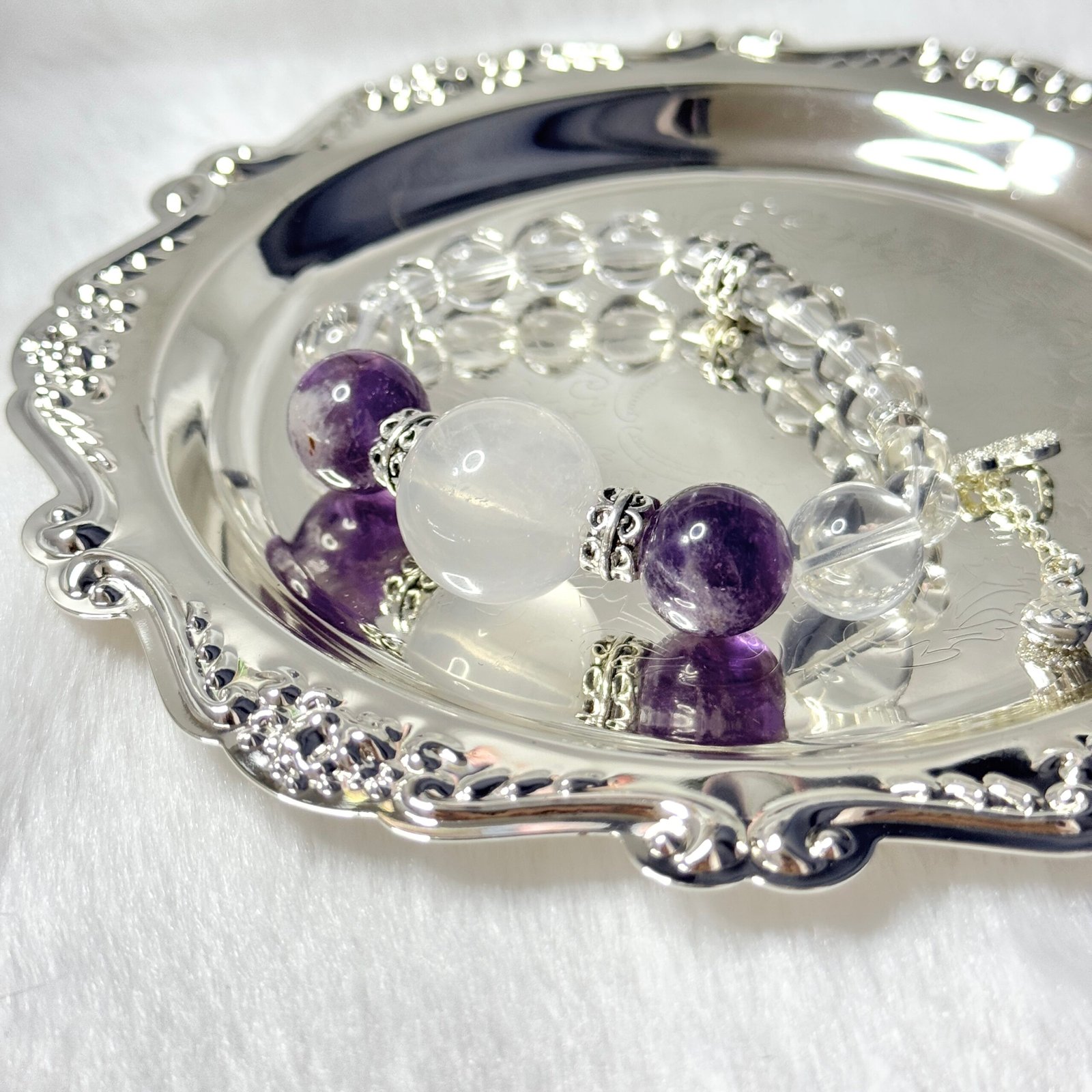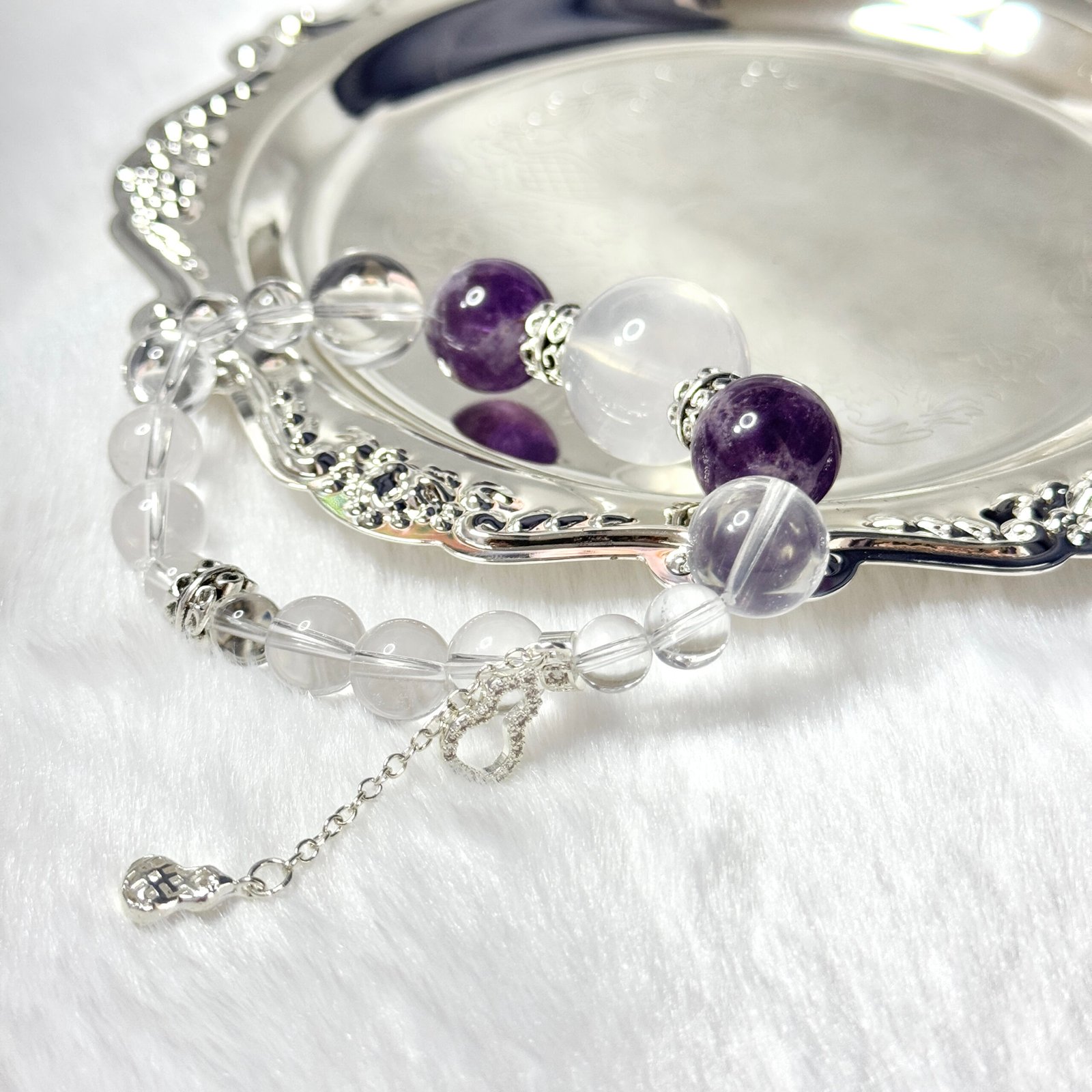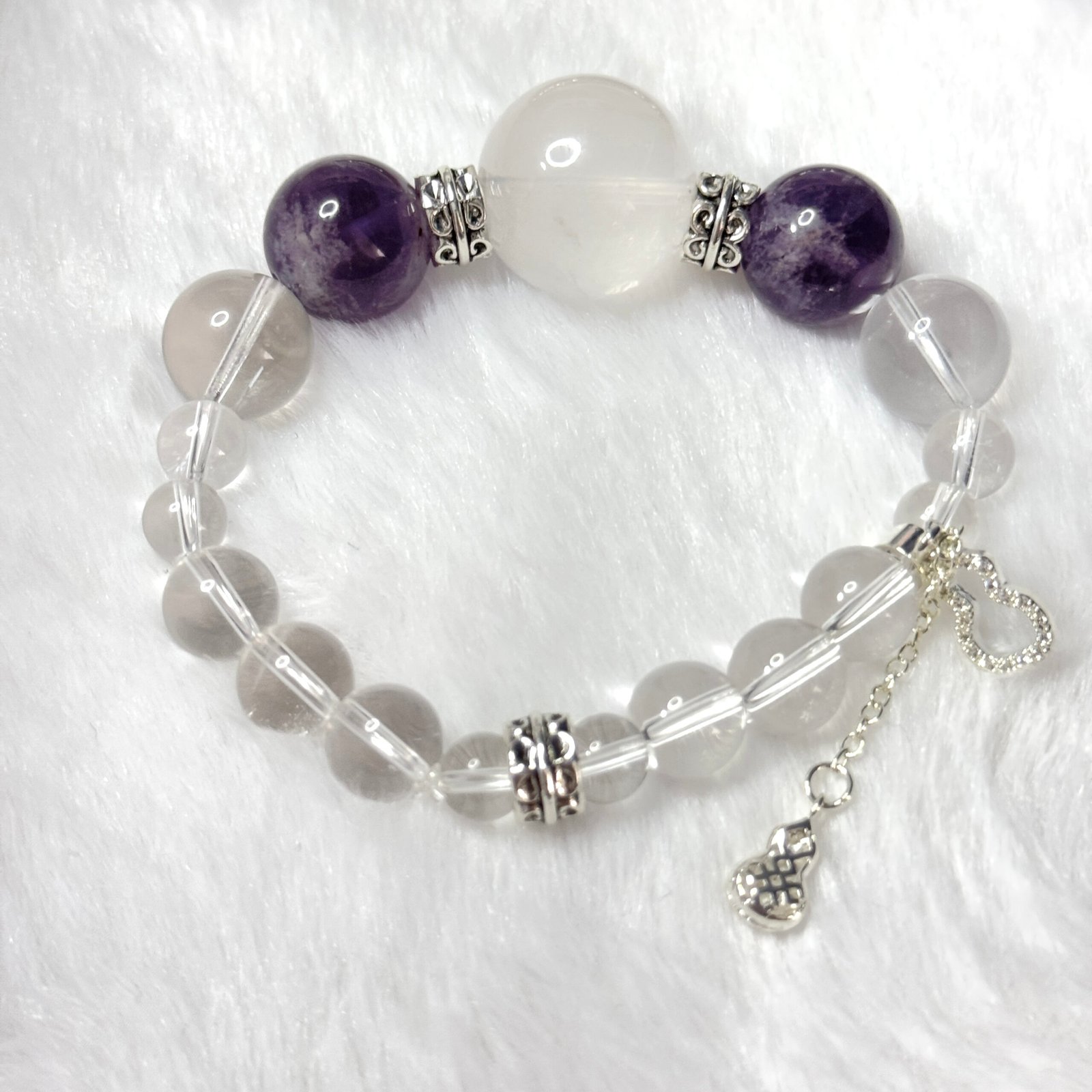 White Crystal and Amethyst Designed Bracelet-11\19mm